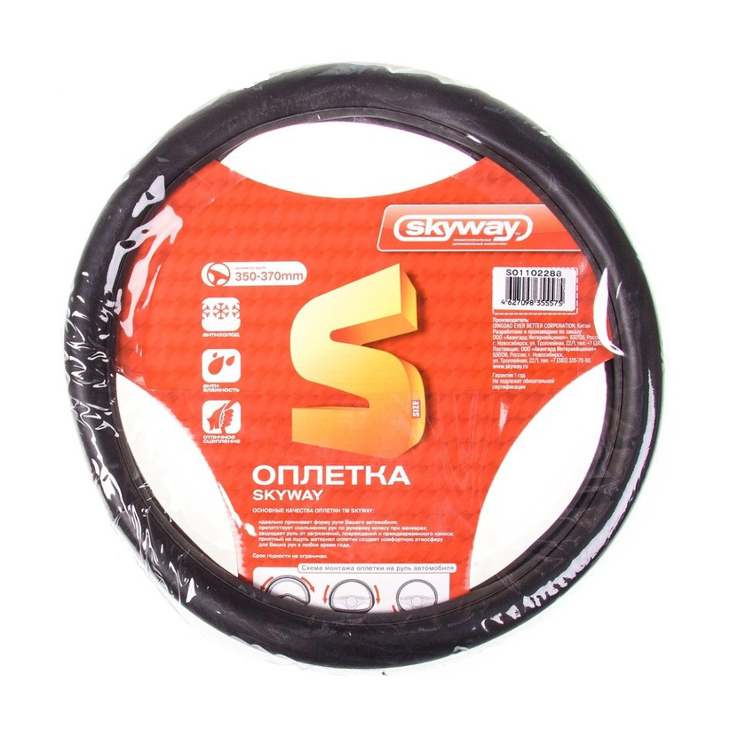 Оплетка SKYWAY, размер S, рифленая ECO, экокожа, черный 3252301