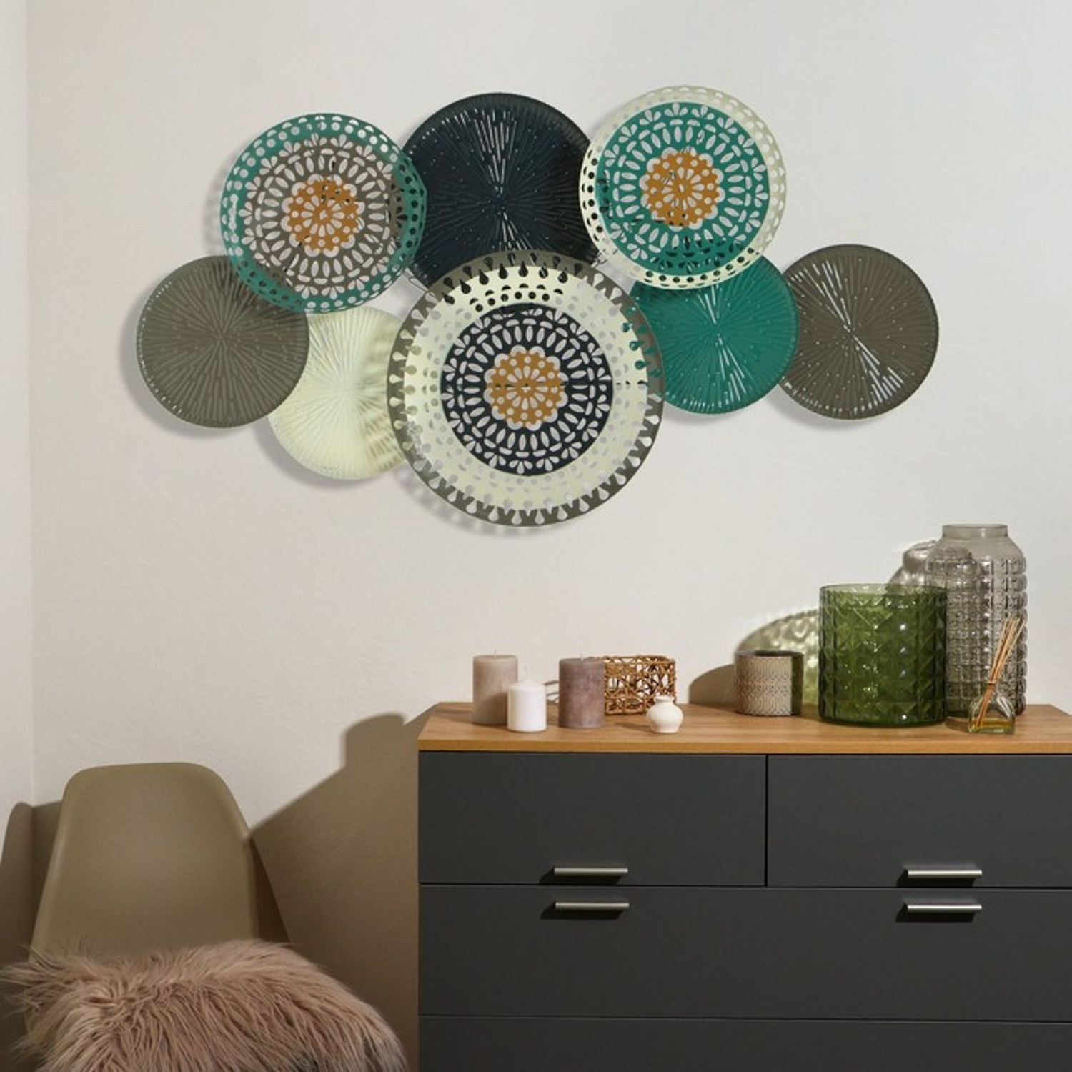 яяяДекор настенный металл "Модерн" серый с бирюзой 64х7х112 см 7090428