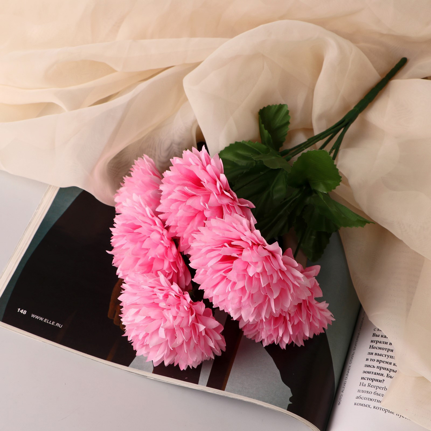 Букет "Хризантема кустовая" 6 цветков, d-7 см h-28 см, микс 9369519