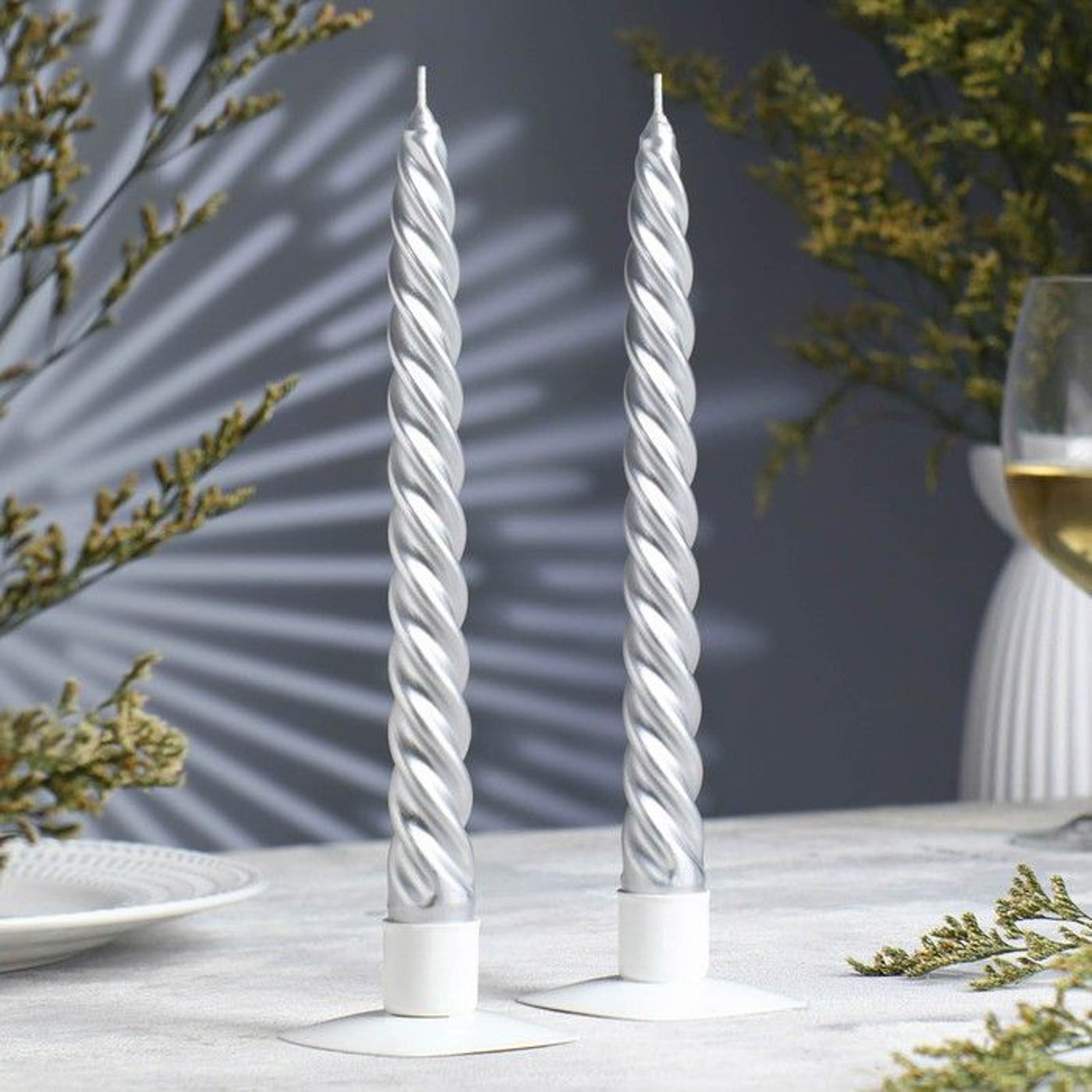 Набор свечей витых, 2,3х 24,5 см, 5 ч, 50 г, 2 штуки, серебряный 1575422