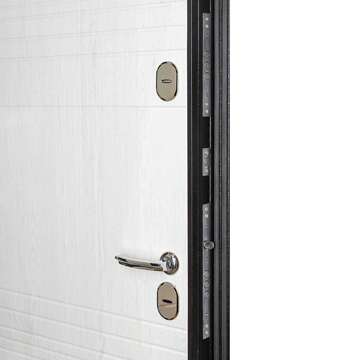 Дверное полотно, дверная коробка, замок основной, замок дополнительный, петли - 3 шт., ручки, наклад