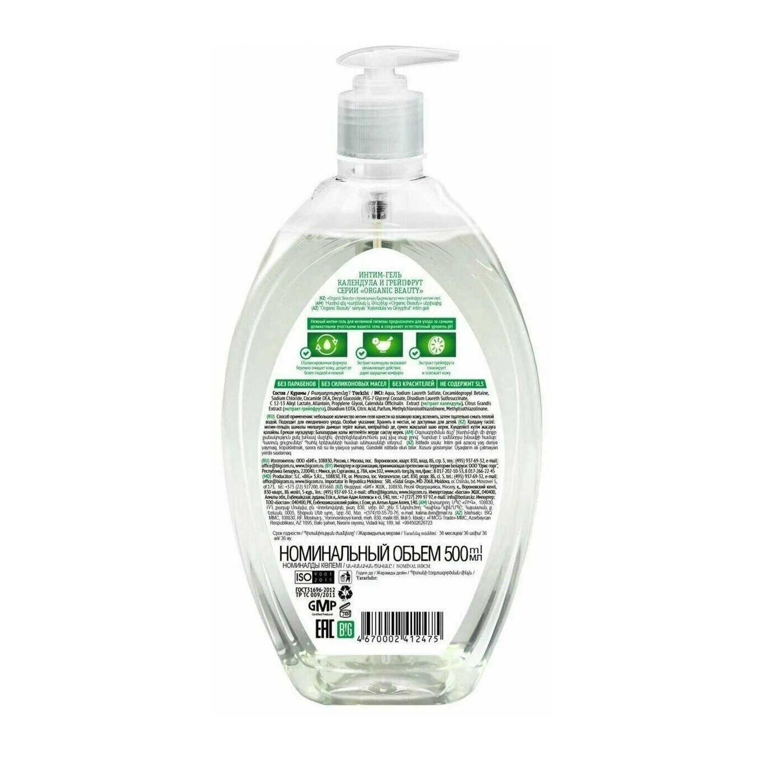 яяяГель д/интимн.гигиены Органик Бьюти Календула и Грейпфрут 500мл.
