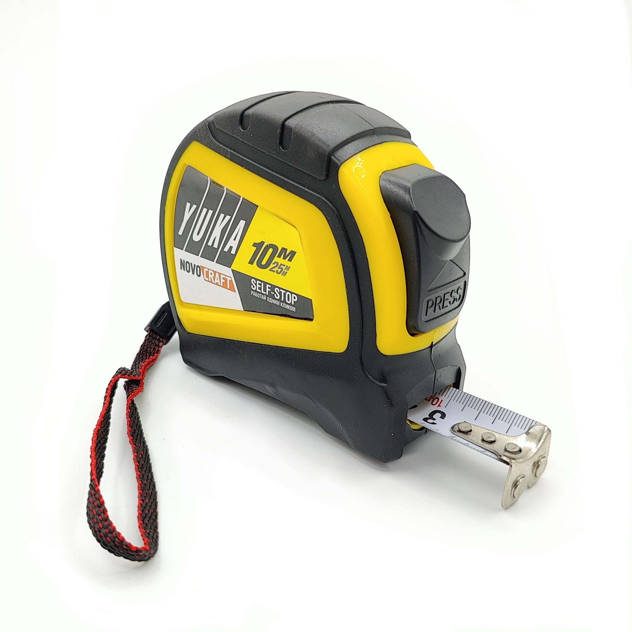 Рулетка 10м х25мм резино-пластик корпус стальная лента автостоп магнит артYK010250M Novocraft*1/6/60