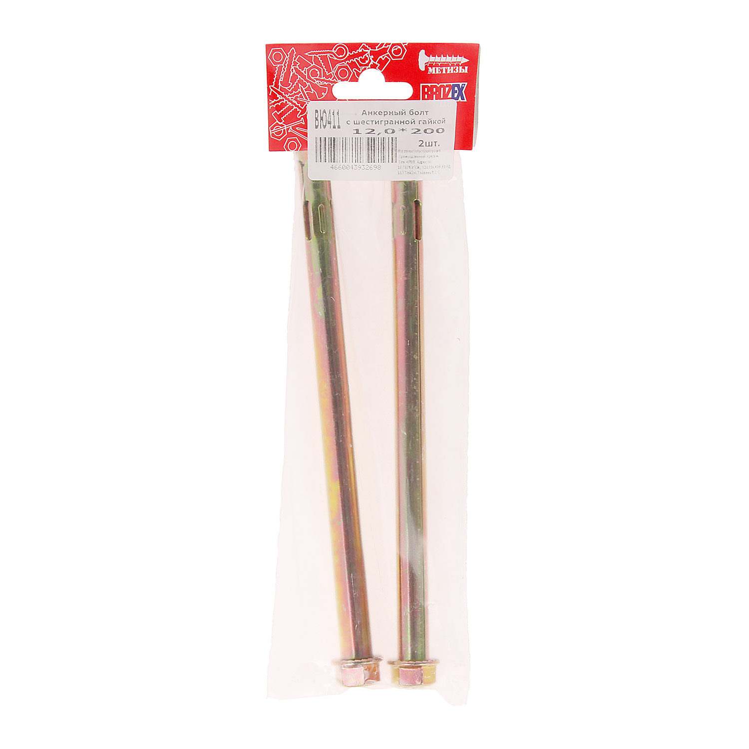 Анкер с гайкой 12х200 (2шт) пакет BROZEX  *10/100