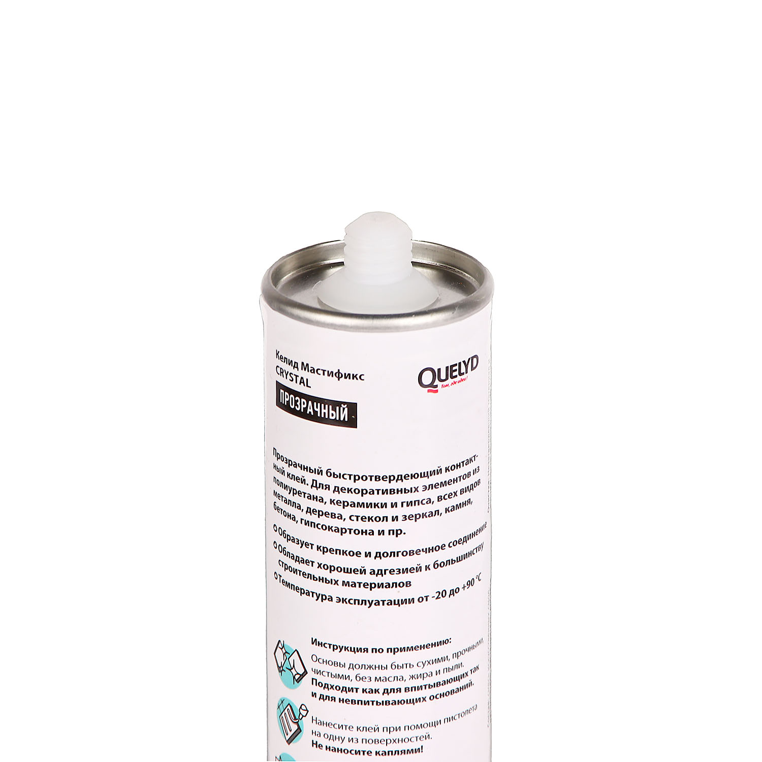 штЖидкие гвозди Quelyd Мастификс CRYSTAL — однокомпонентный клей на основе искусственных смол, высыхающий за счет физического испарения растворителей. Разработан для универсального применения, может заменить большинство монтажных клеев. Создает сверхпрочное клеевое соединение.
