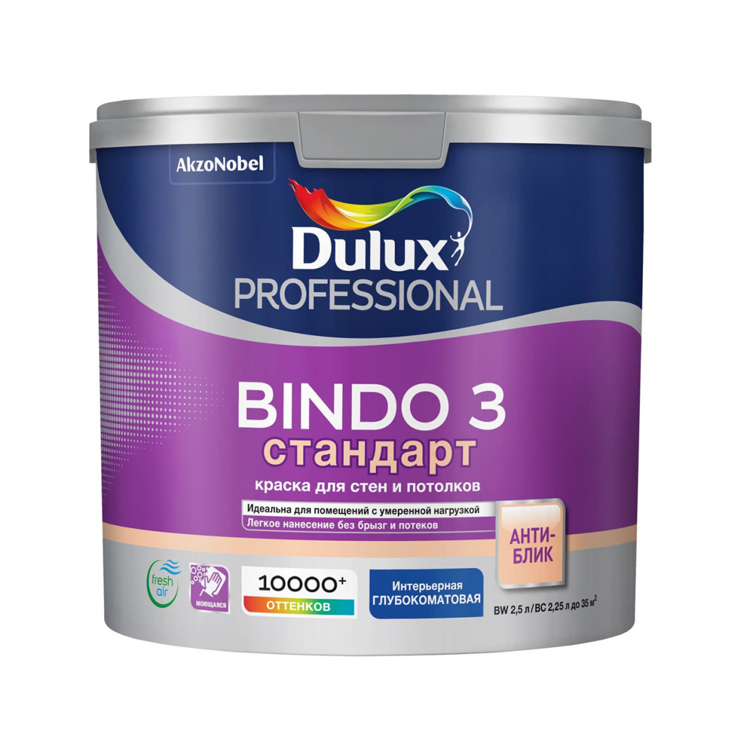 Краска акриловая для стен и потолков 2,25 л BINDO 3 База BС моющаяся глубокоматовая *1