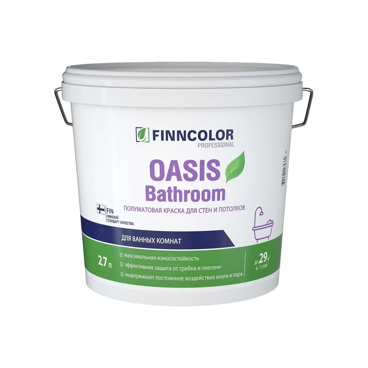 Краска акриловая для стен и потолков "Finncolor" Oasis Bathroom База A  2,7 л п/мат влагостойкая*1