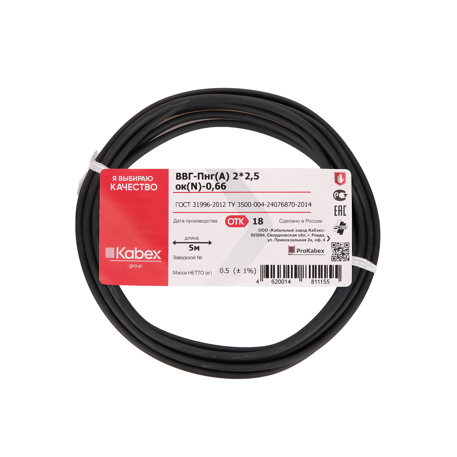 Кабель ВВГнг 2*2,5 (уп. 5м) ГОСТ *1