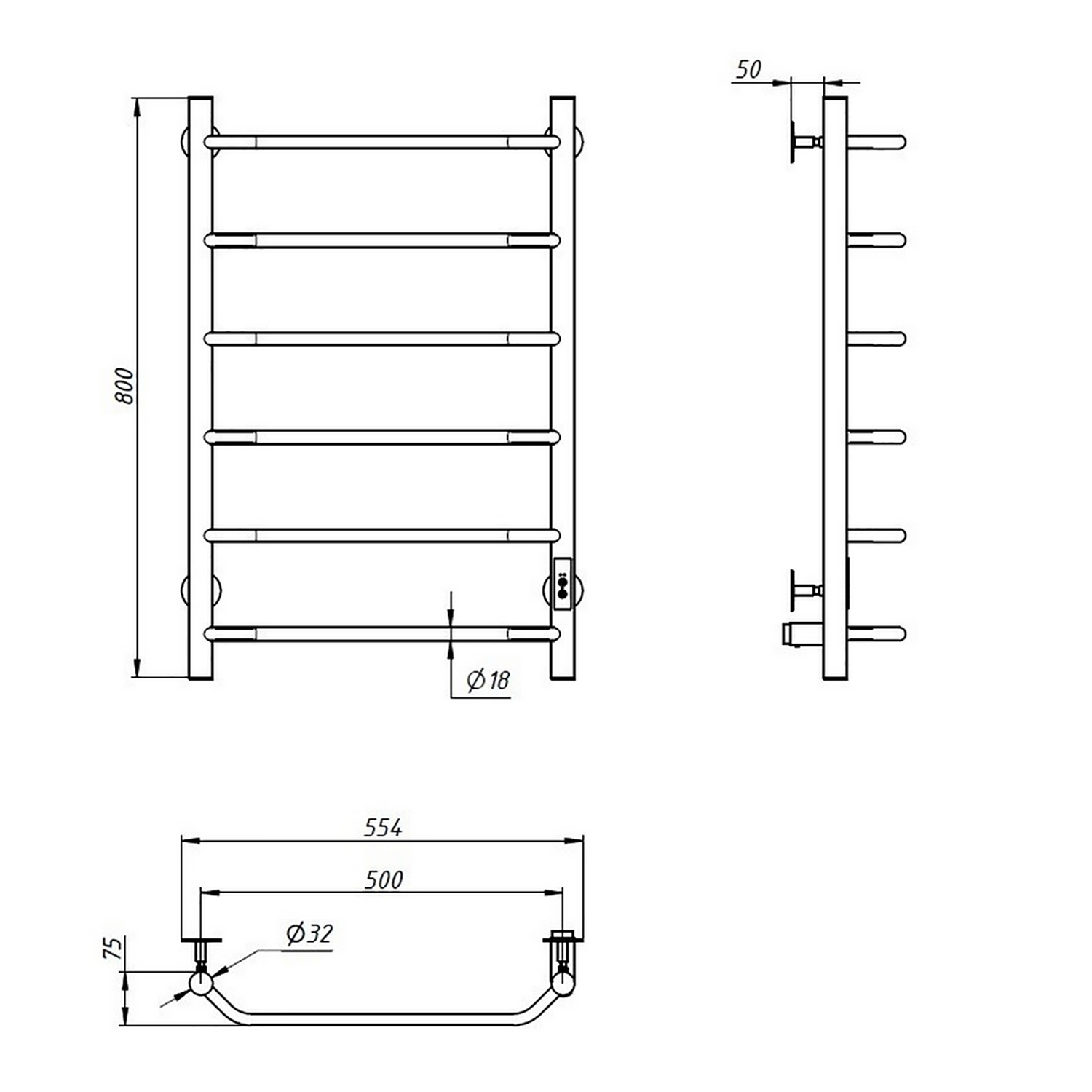 Полотенцесушитель электрический Пэк сп 6 П 80х50 черный ВГП Тругор *1