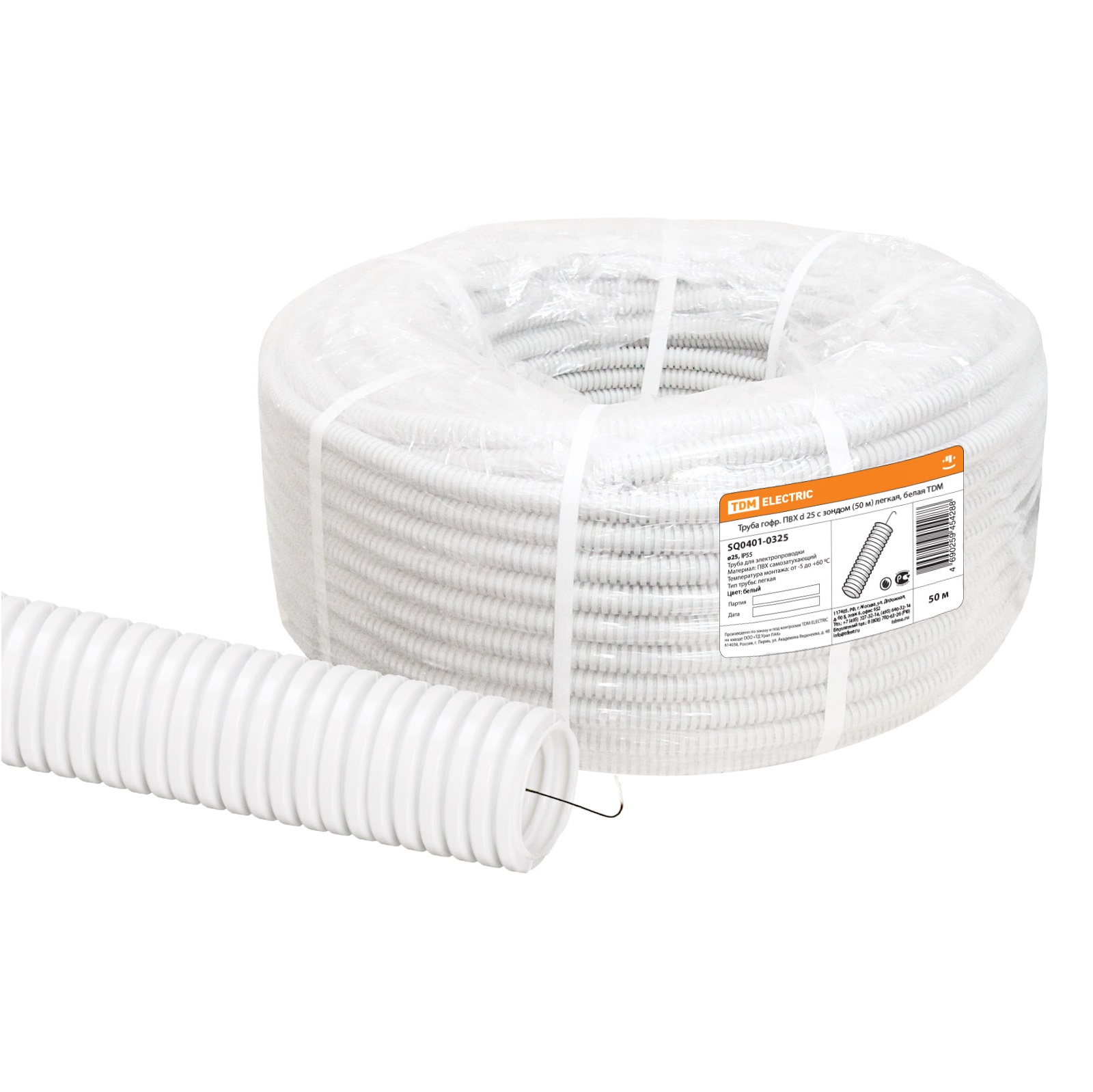 Труба ПВХ гофро с зонд. d25мм(50м) легкая, белая TDM SQ0401-0325 *50