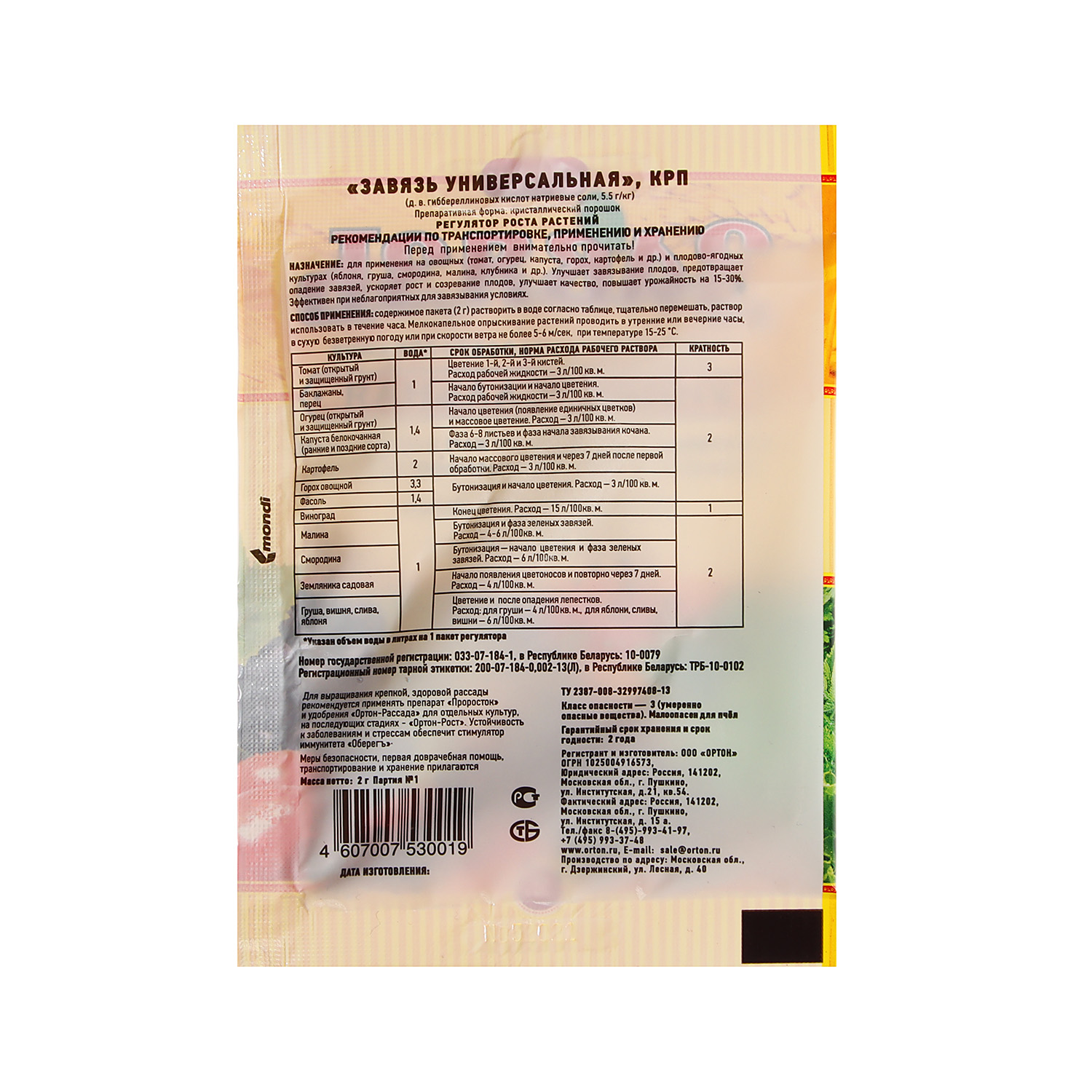 - Стимулирует образование завязей и их рост при неблагоприятных погодных условиях и отсутствии опыляющих насекомых