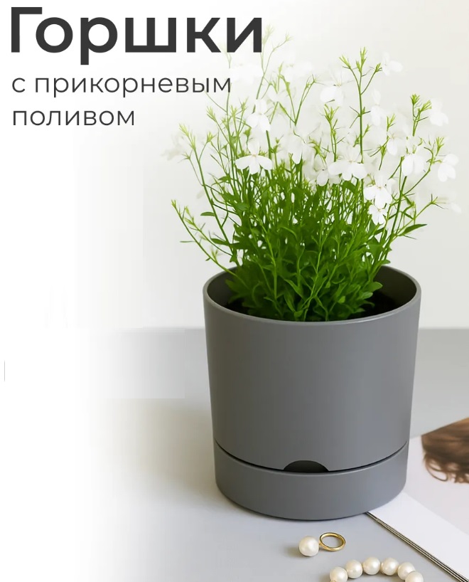 Кашпо пластм. "Гранд" 3л d верха 170мм h 166мм с поддоном Серый 5 0636 PL *1/9