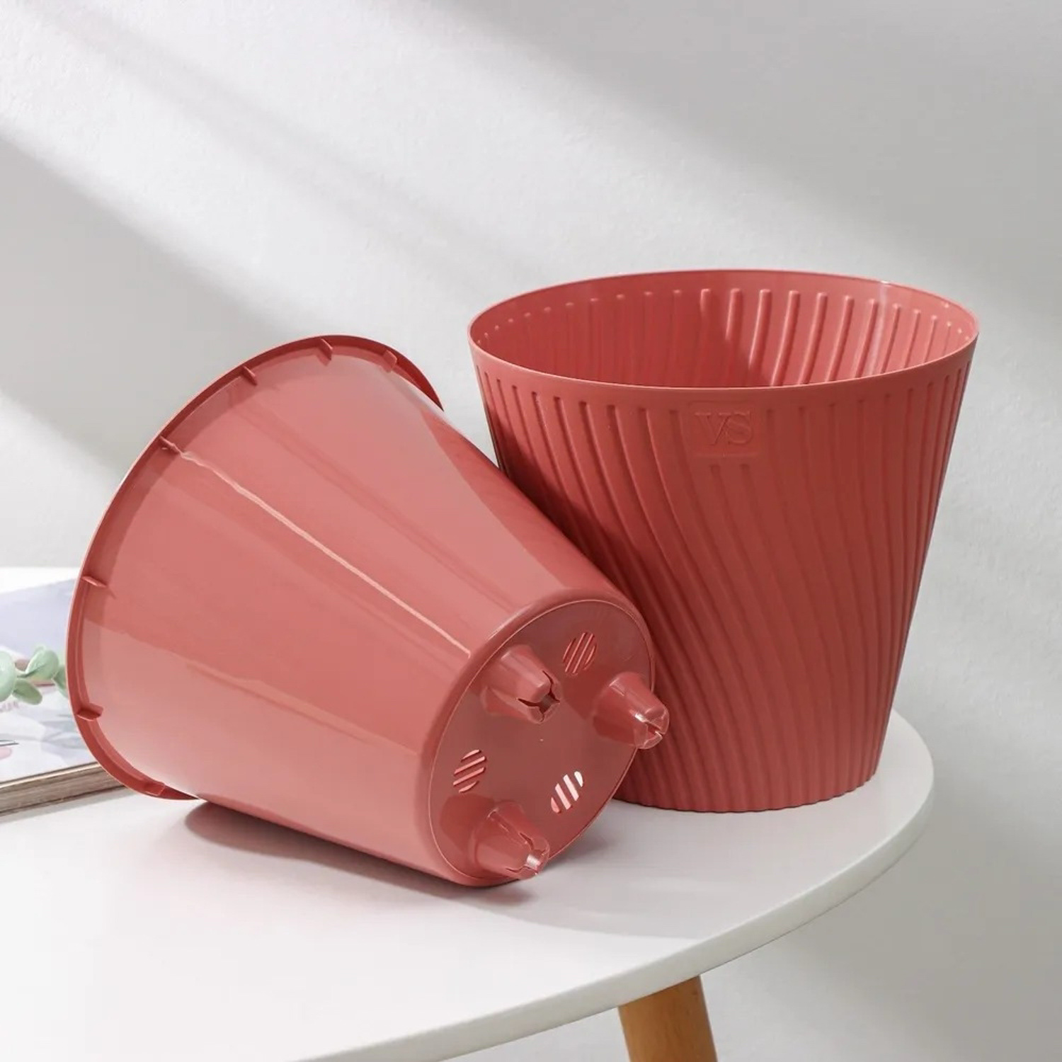Кашпо пластм. "Луи" 1,2л d верха 140мм h129мм со вставкой Пудра AML-1,2-06 ("VipSet") *1/30