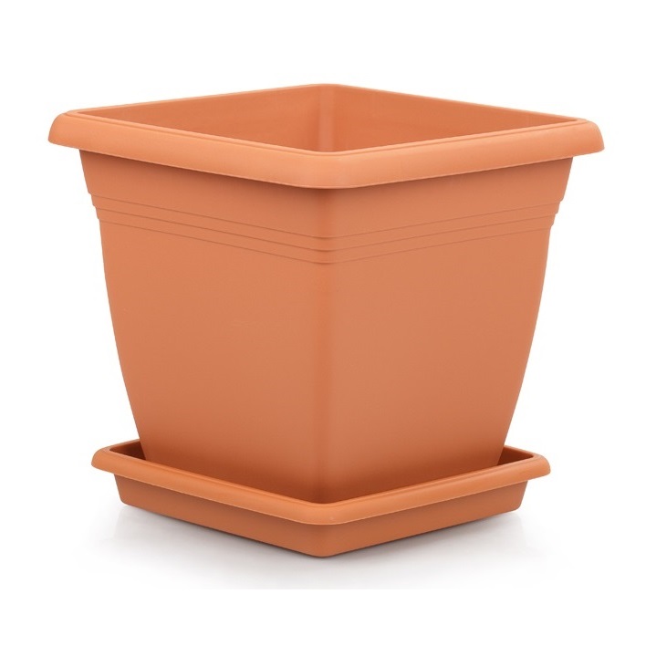 Кашпо пластм. "Вилла" 32,0л 400х400мм h360мм с поддоном квадратн. Терракот. VK04 ("Serinova") *1/8