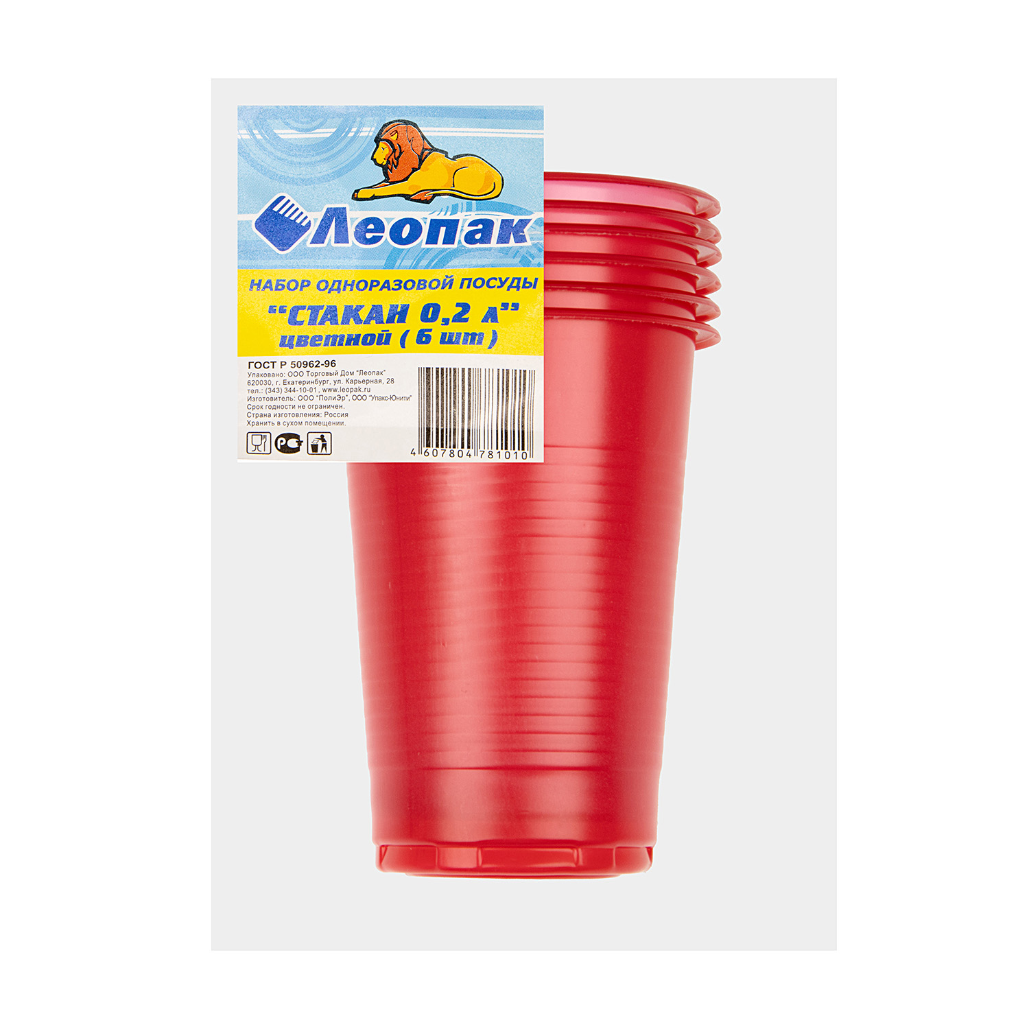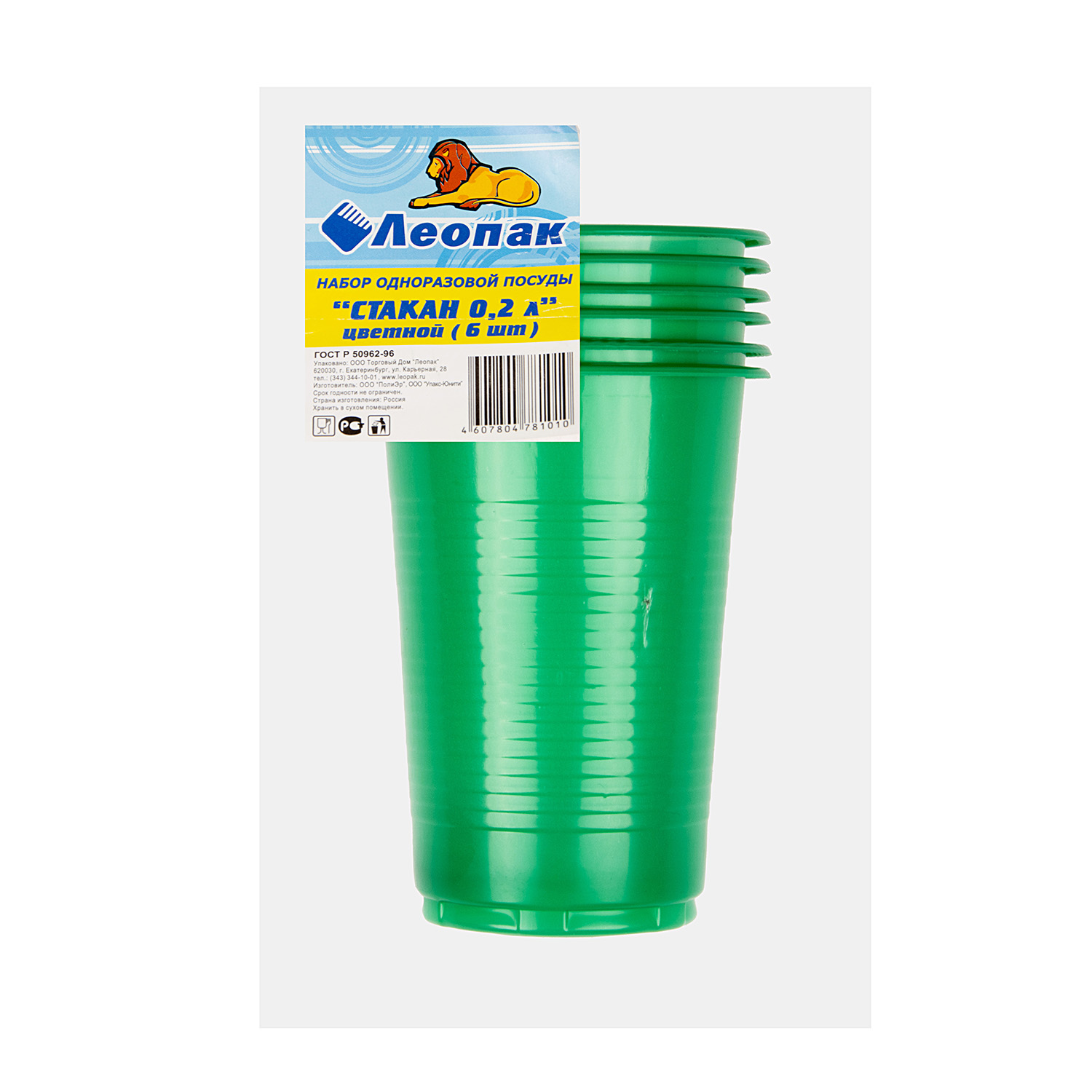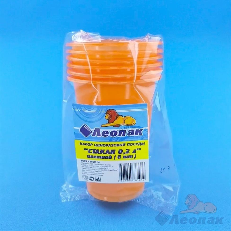 Одноразовые стаканы 0,2л НАБОР 6шт Цветные "Леопак" *1/80