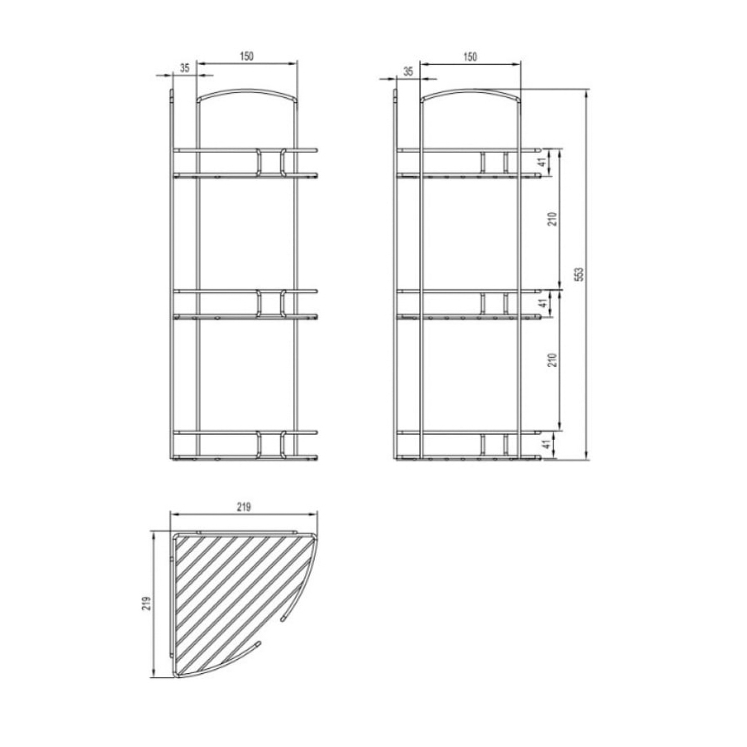 Полка трехъярусная угловая, проволока стальная, 11, Milardo, 111WC30M44
