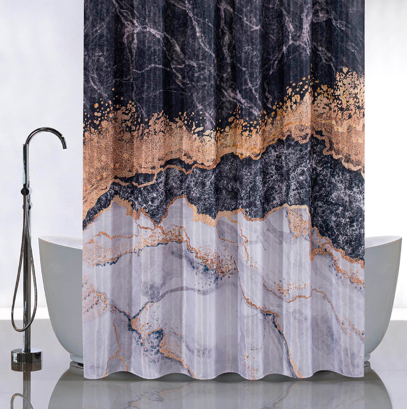 Штора  для ванной "Санакс" п/эстер 180*180см "Черный мрамор"  без колец 01-81 *1/24