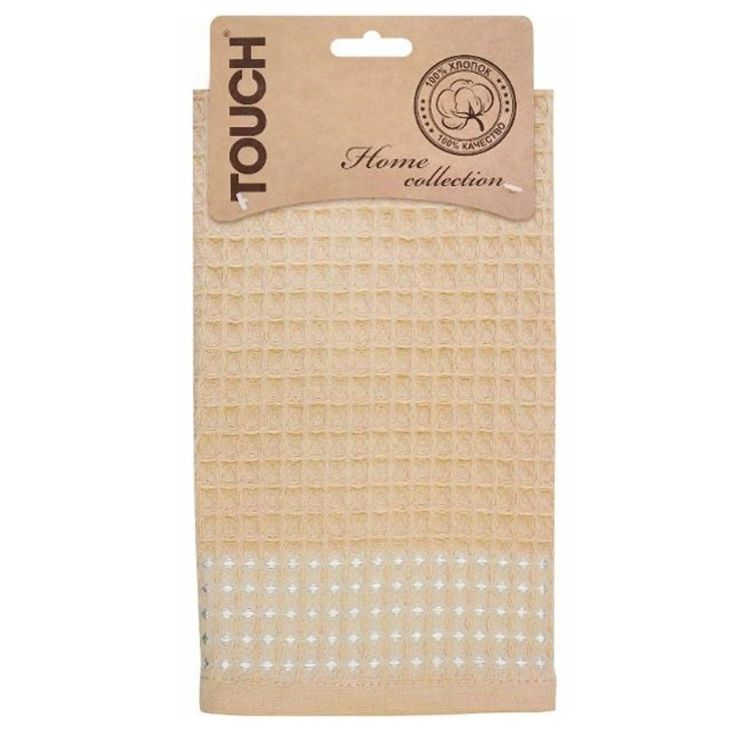 Полотенце вафельное 35*55см на хангере Крупная клетка ваниль 150г/м2 Touch *6