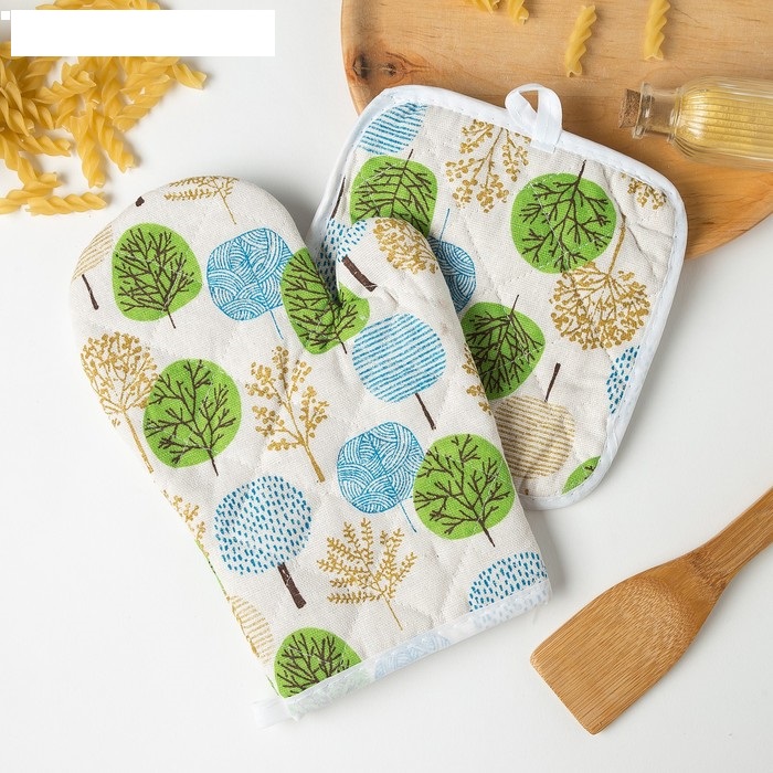 Набор прихваток Лес варежка-прихватка 26х16см, прихватка 17х17см полиэстер 100% Доляна *1