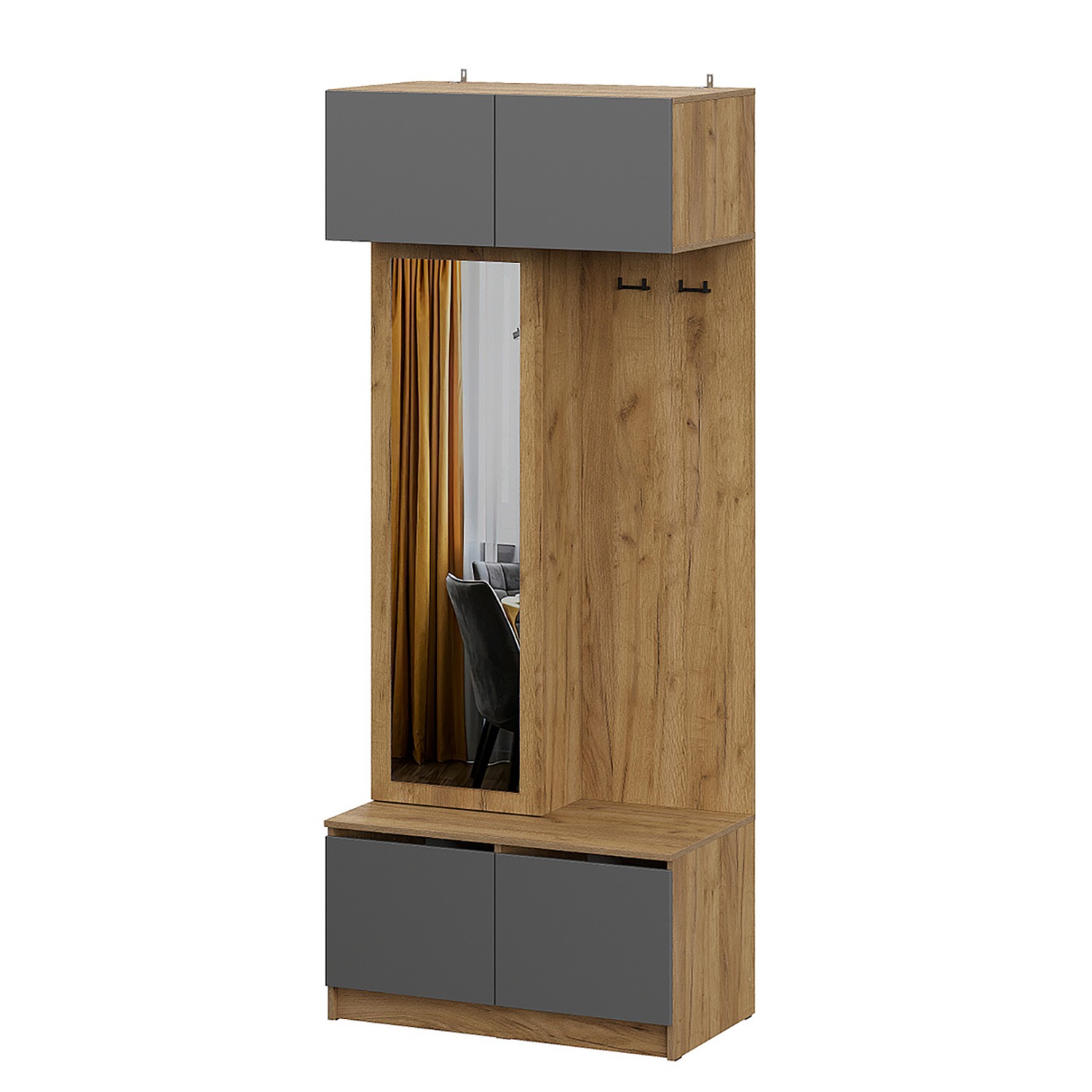 Набор мебели для прихожей АВИНЬОН вешалка с зеркалом Дуб Крафт Золотой/Графит серый*1
