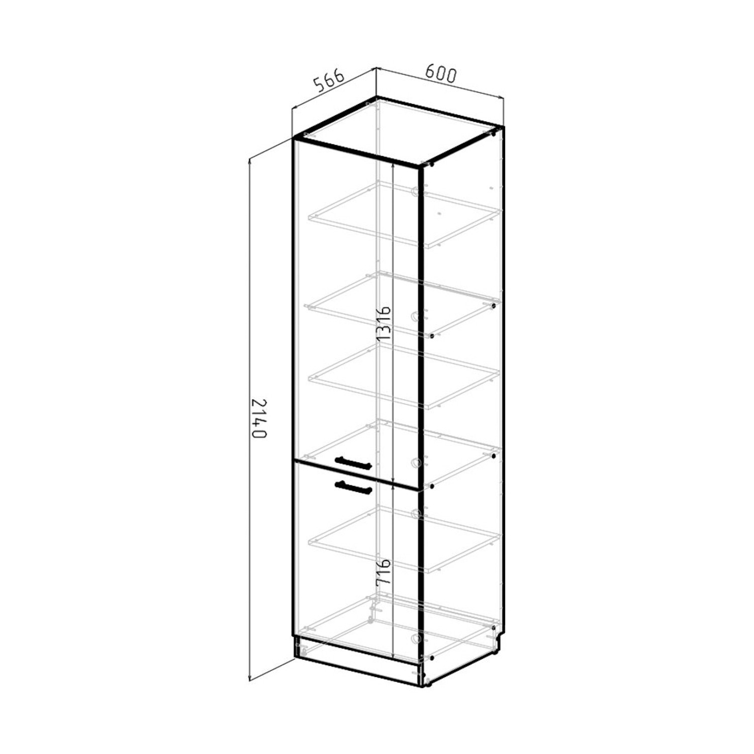 Пенал 600х2140х566 мм ГЕРДА, для встроенного холодильника, лофт