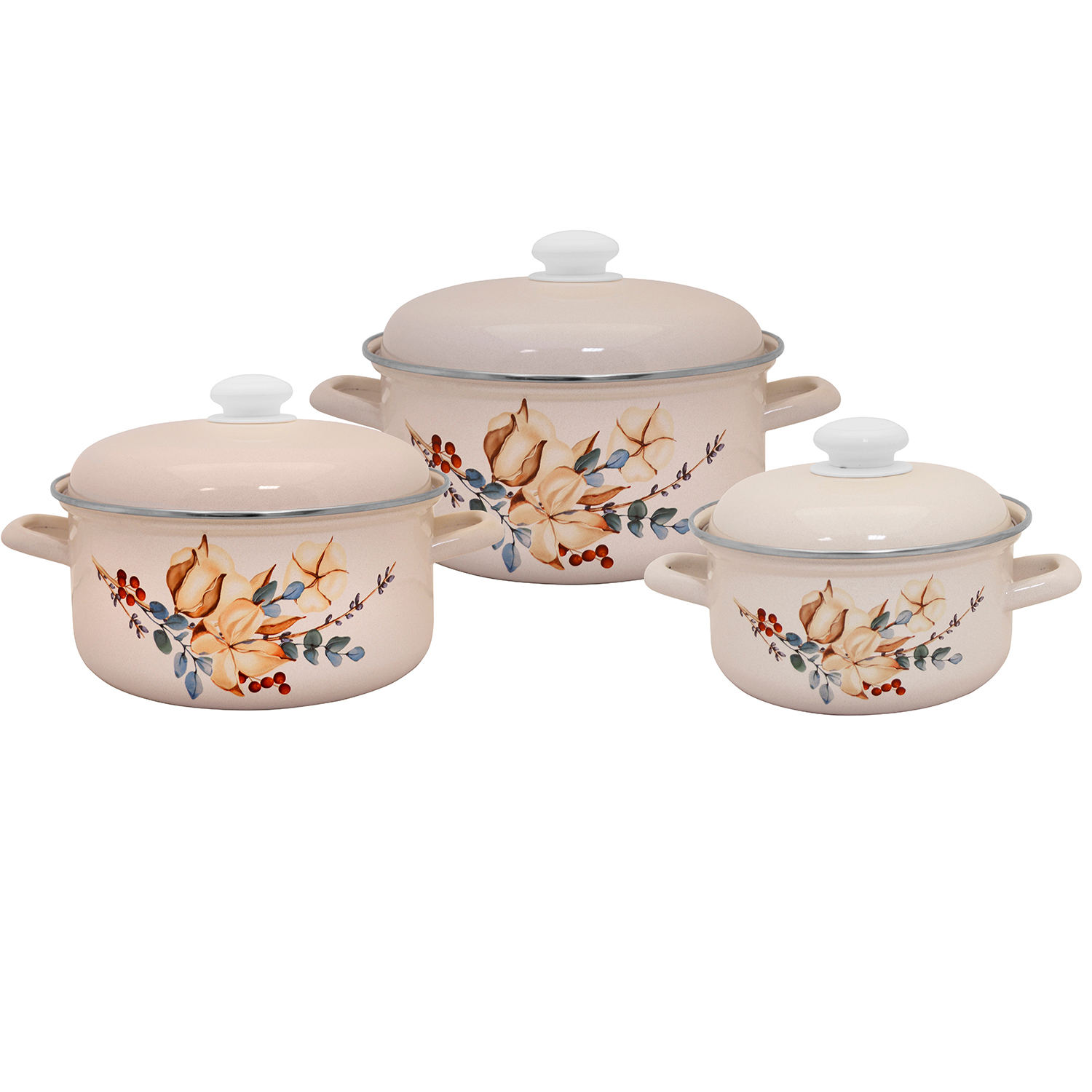 Набор кастрюль эмалированных: 1,5л+2,0л+3,0л рис. "Унесённые ветром" С-124АП2/4 "Лысьвенские ЭМА" *1