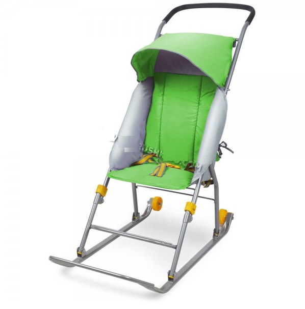 яяяСанки-коляска детские "Умка 1 комфорт" выс.сид.+коз.,плоск.полозья с колес. Зелен. У1К (Иж.)*1/2