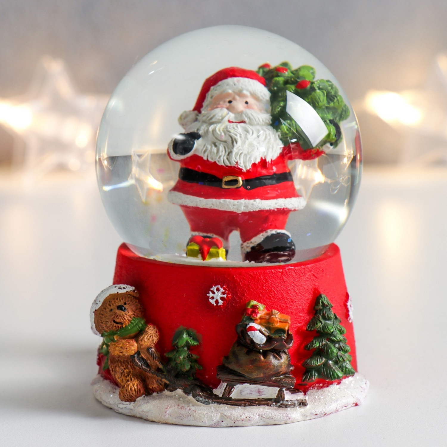 Сувенир полистоун водяной шар "Дед Мороз с ёлкой на плече" 6,5х6,5х8,5 см 7568044