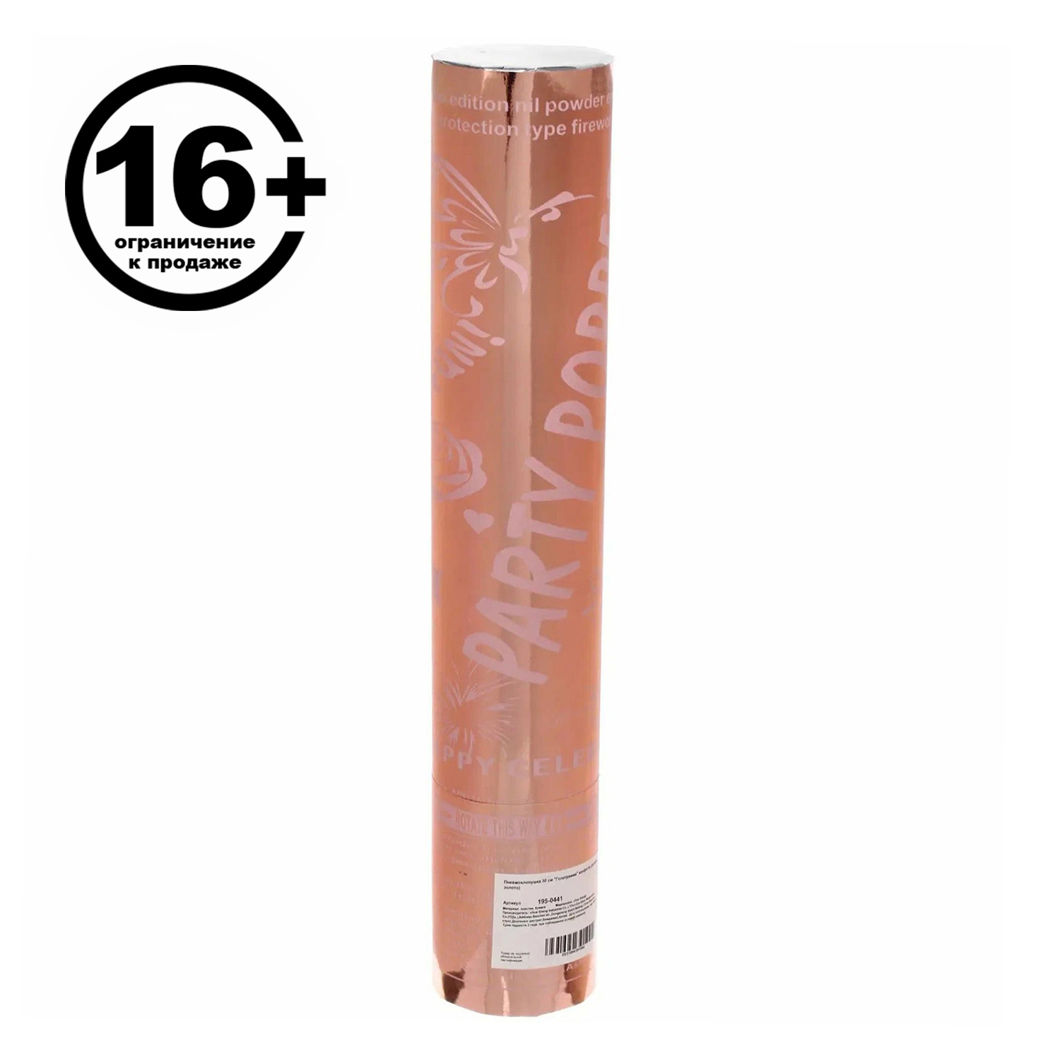 Пневмохлопушка 30 см "Голограмма" конфетти (розовое золото)