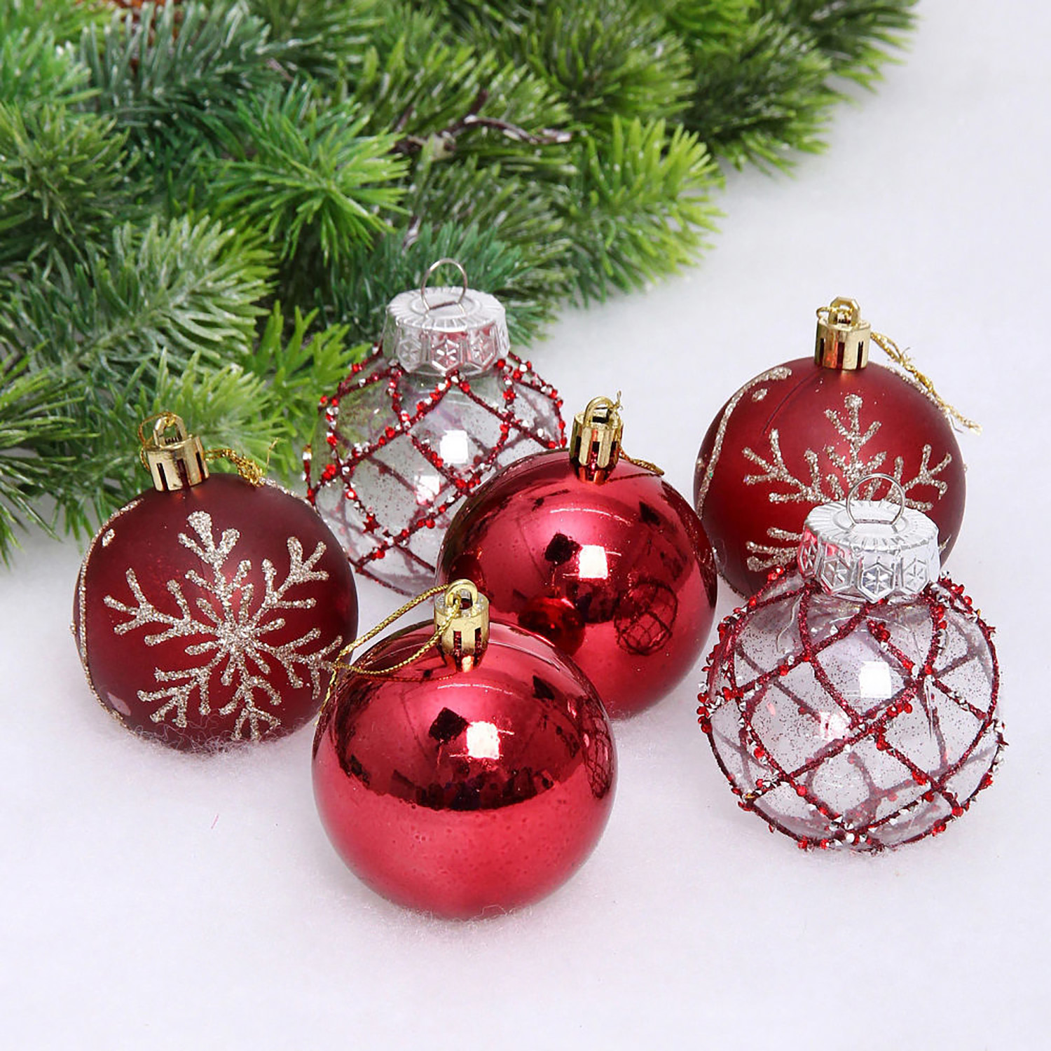 Набор шаров "Очарование" 6 см (в наборе 6 шт), Рубин