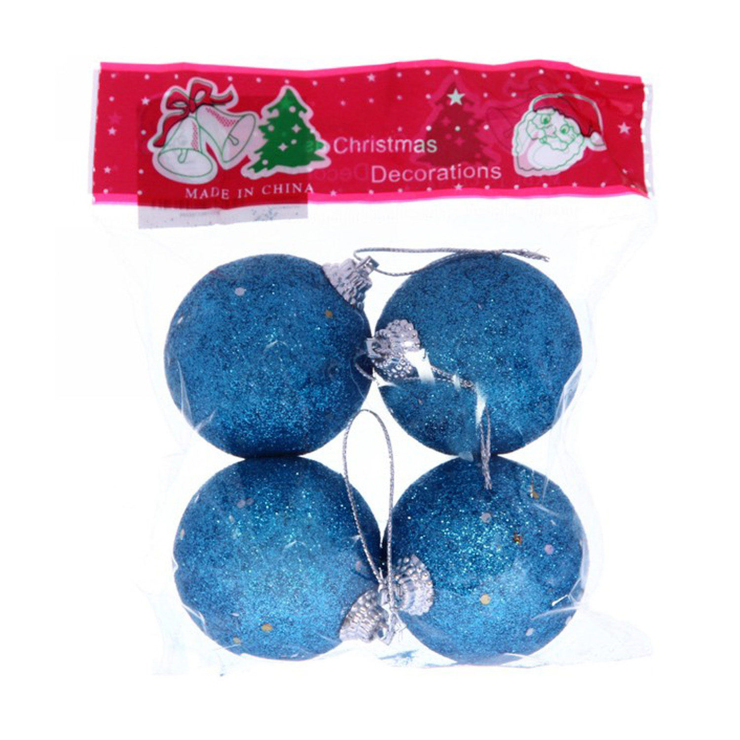 Новогодние шары 5 см "Посыпка из блёсток" набор 4 шт, синий