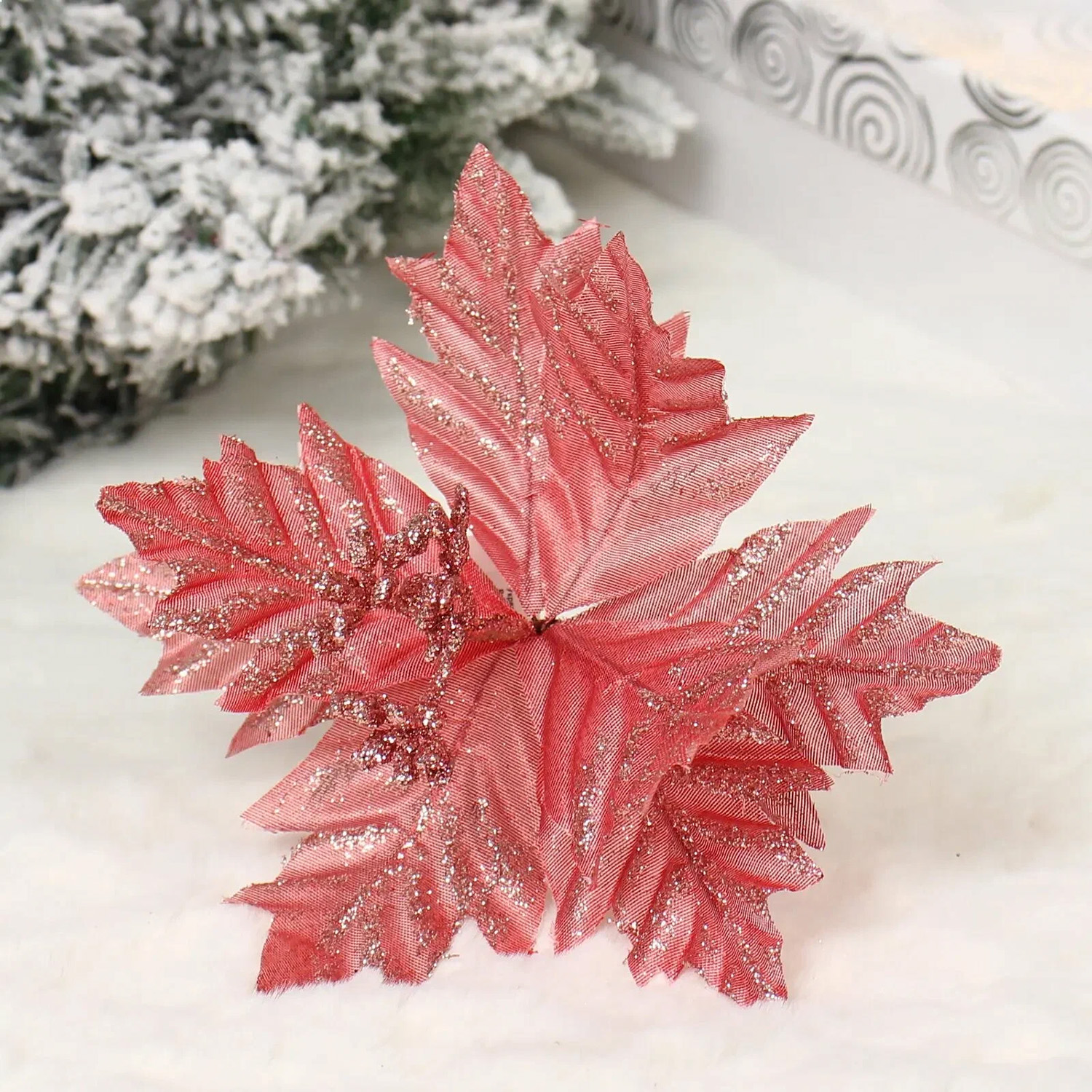 Украшение новогоднее "Пуансеттия - Мерцание" 17 см, Розовое золото