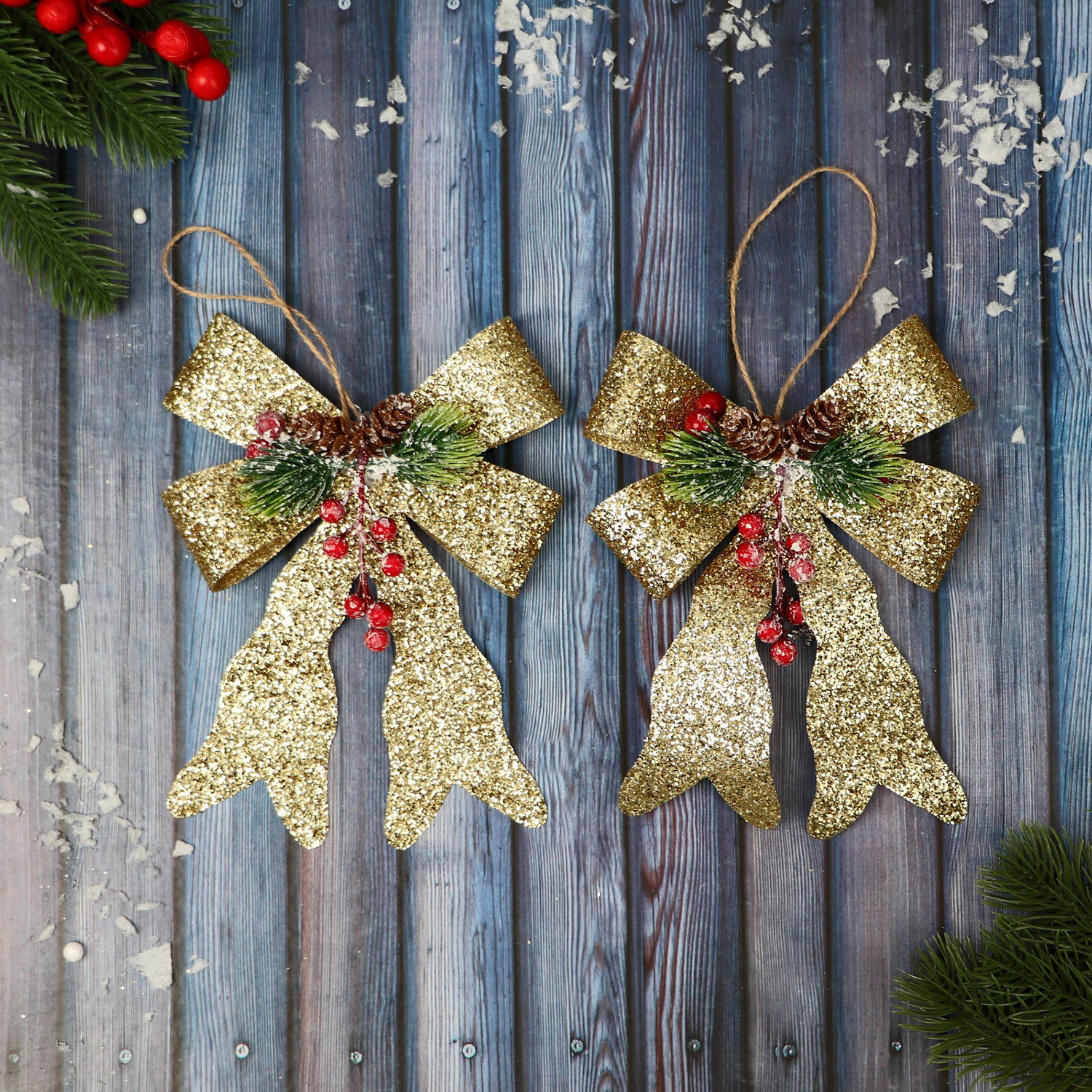 Украшение ёлочное "Бант элит" (набор 2 шт) 12х14 см, золото 9692822