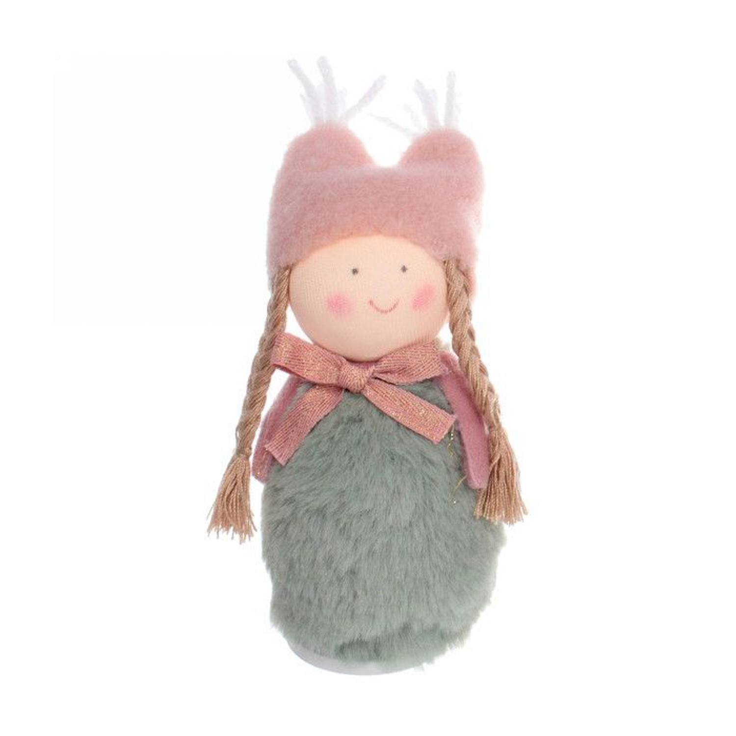 Бант, розовая шапка, серая шубка
