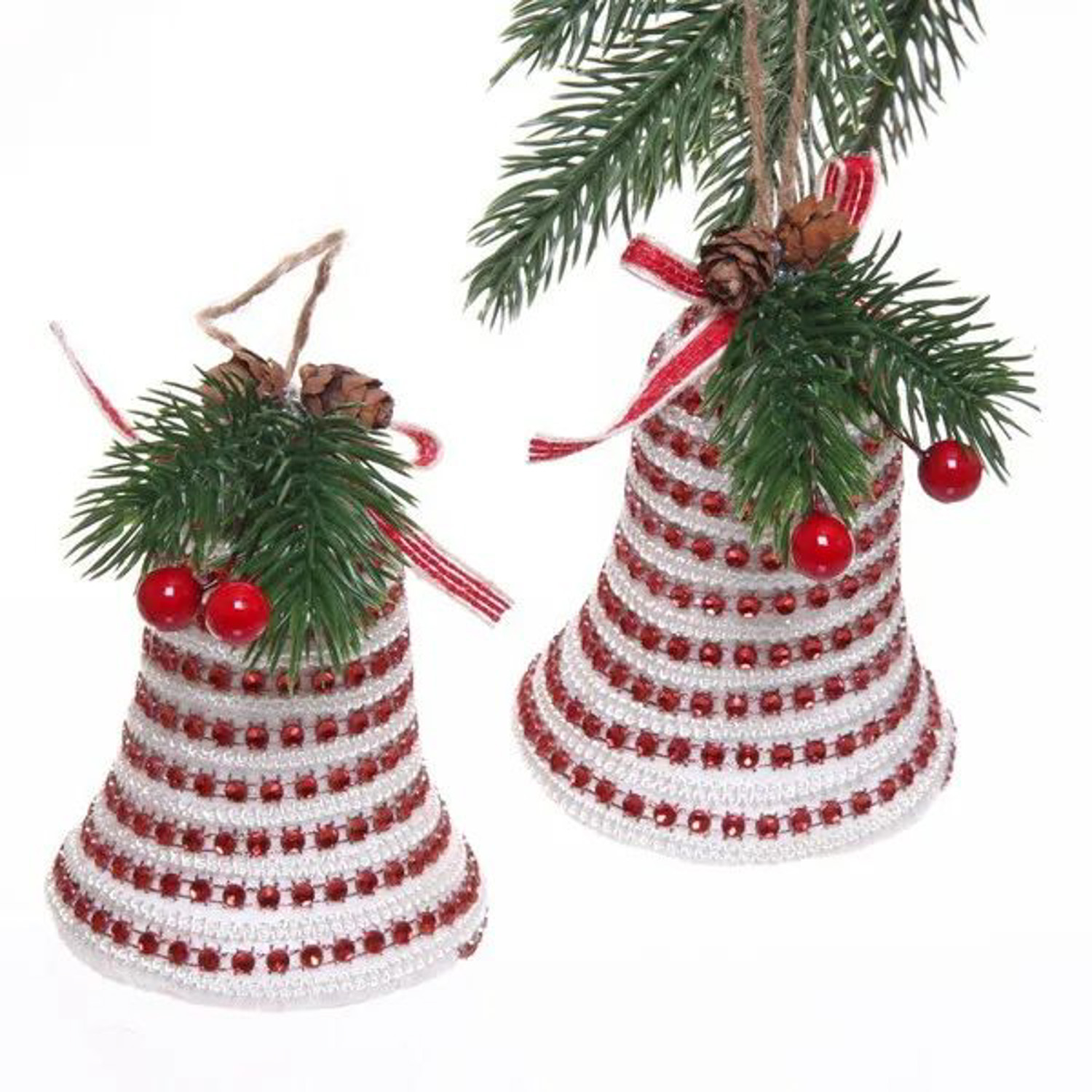 Ёлочные игрушки "Колокольчики с бусинками" 11 см (набор 2 шт), Красный