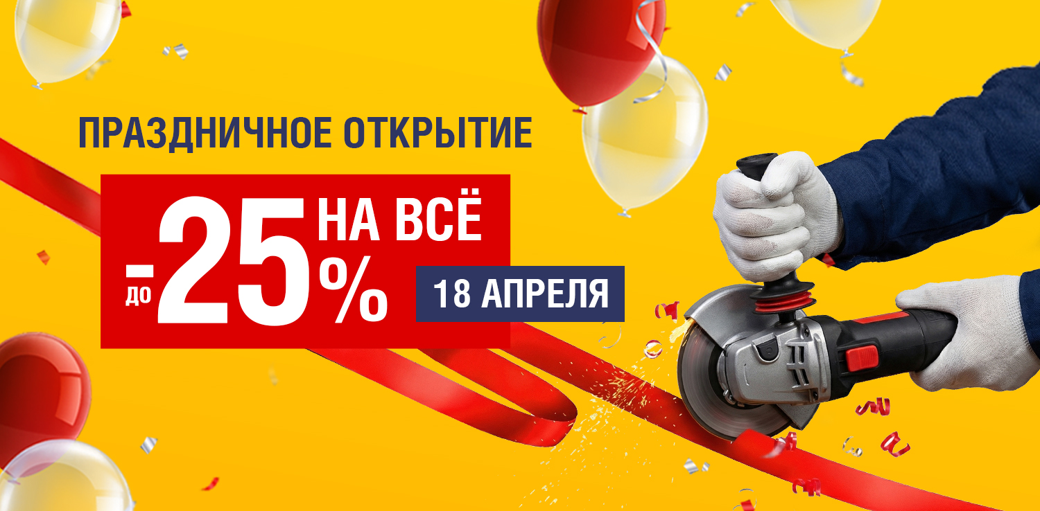 Празднуем открытие нового магазина ДомоСтрой в Чебаркуле 18 апреля по адресу ул. Октябрьская, д. 20! И в честь этого праздника дарим скидку до -25%.